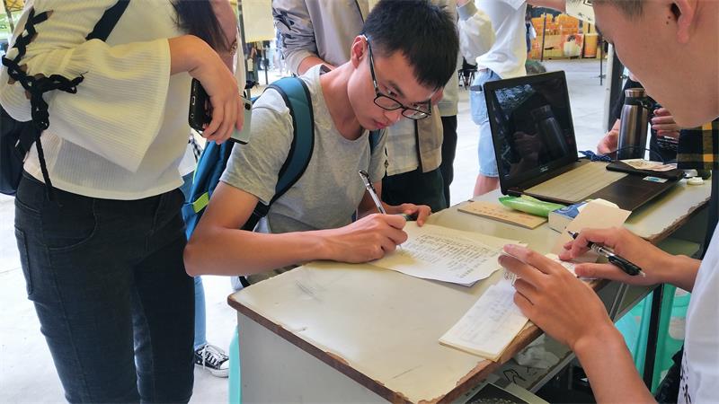 当天下午,活动现场气氛热烈,各学生社团除了张贴宣传海报之外,还派出社员向前来咨询的同学积极宣传,竭力展示自己的社团文化和特色才艺。不少同学们选择了心仪的社团部门并完成报名工作,也有不少老师来到活动现场,与各个社团的负责同学进行交流。
