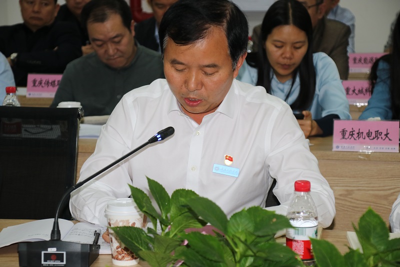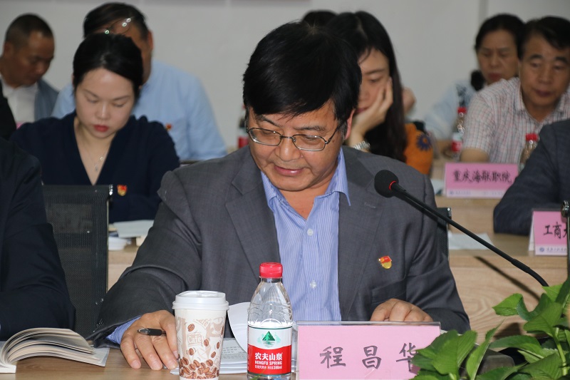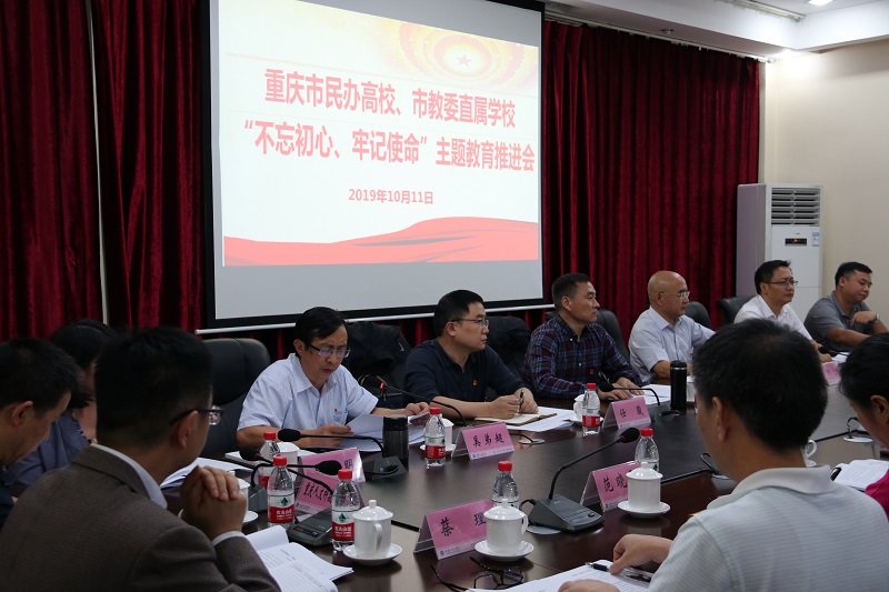 在第二个议程的主题教育推进会上,重庆工程学院、重庆工商大学融智学院、重庆电讯职业学院等学校党委书记分别就本校主题教育开展情况和成果做了汇报与交流发言。
