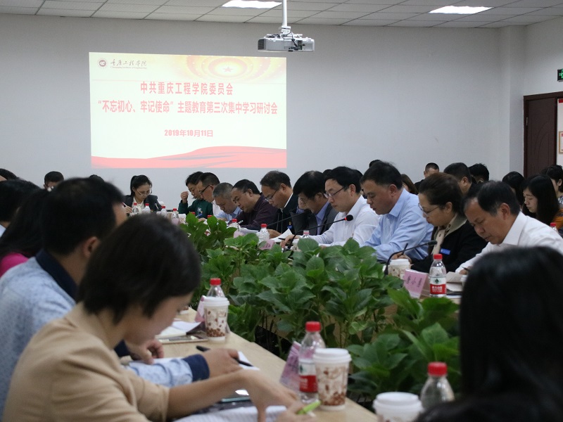 会议分为两个议程,首先是与会领导对重庆工程学院“不忘初心、牢记使命”主题教育第三次集中学习会进行现场观摩。