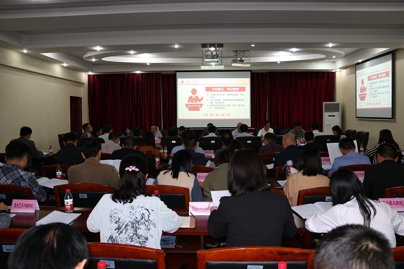 本网讯(文/党委宣传部 图/大学生记者团 钱妮琳 袁艺谋)10月11日下午,重庆市民办高校、市教委直属学校“不忘初心、牢记使命”主题教育推进会在我校南泉校区举行。市委巡回指导十二组副组长、市水利局二级巡视员刘家明,市委巡回指导十二组成员、市委编办信息处处长任骏,市委教育工委第二批主题教育领导小组副组长兼办公室主任、市委教育工委委员、市教委二级巡视员、机关党委书记帅逊,以及市委教育工委第二批主题教育领导小组办公室、综合组、宣传组、协调服务组、指导组的领导,全市民办高校和市教委直属学校的相关领导,重庆工程学院党委班子成员、全体校领导、各党总支书记、直属党支部书记、部分二级学院院长、教师党支部书记、学生党支部书记、职能处室负责人出席和参加会议。