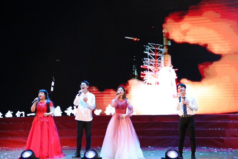接着,精彩纷呈的文艺晚会正式上演。晚会紧扣“青春心向党,建功新时代”的主题,涵盖了诗歌朗诵、舞蹈表演、原创说唱等节目形式。由我校大学生艺术团带来的诗歌朗诵《不一样的年代,不一样的青春》,不仅诵响了晚会主题,也展示了青春洋溢、整装待发的新时代重工青年形象;