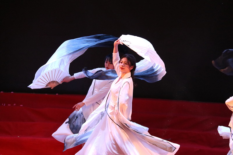 重庆工商大学融智学院大学生艺术团奉上了舞蹈表演《梦中的故乡》,舞者们在台上跳出了青春与活力,跳出了激情与梦想,将晚会气氛点燃。