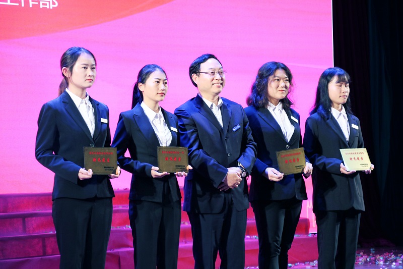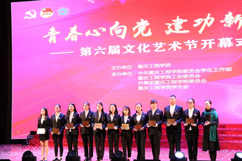 晚会中,与会领导们还分别为在重庆工程学院“我和我的祖国”系列主题教育活动中获评“优秀个人”和“优秀团队”,以及在2019年重庆市普通高校文明公寓和文明寝室评选活动中荣获“特色寝室”与“文明寝室”称号的学生代表们颁奖。