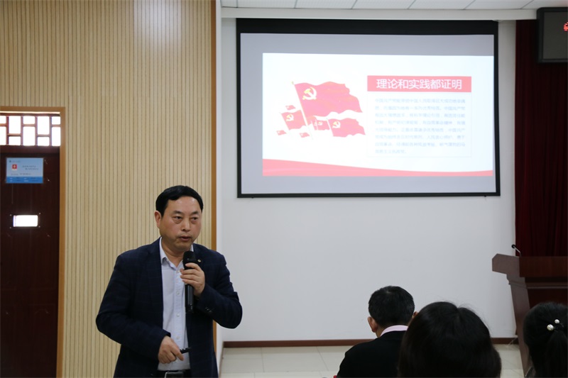 张业平从六个方面给大家讲述了中国共产党为什么能带领中国人民取得巨大成功。他讲到,中国共产党拥有以下几个特质:一是有远大理想追求、二是有科学理论引领、三是有选贤任能机制、四是有严明纪律规矩、五是有自我革命精神、六是有强大领导能力,这些特质都是中国共产党能够领导全中国人民取得革命胜利的重要法宝,也更加说明了中国共产党是最高的政治领导力量。