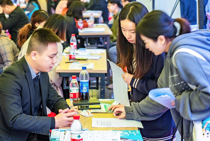 据了解,学校就业指导纳入人才培养体系贯穿整个大学阶段。大一开设《大学生生涯规划》课程,帮助学生做好大学学习规划;大二结合专业课程教学,学生在专业教师的引导下制定学业规划培养方案;大三阶段进行就业创业实践指导,帮助学生树立正确就业创业观念;大四阶段主要对毕业生进行求职规划,帮助学生制定职业发展目标,同时还指导学生学习个人简历制作和培养面试技巧,并组织模拟竞聘活动帮助学生提高就业能力。刘达斌副处长表示,今天来面试的同学都接受过老师们指导,指导老师从面试着装到行为举止,甚至连简历设计都做了细致讲解,帮助学生们做好每一个细节工作。他还希望大二大三的同学也走进双选会现场观摩学习、总结经验、提升能力,为日后找到满意的工作提前做好准备。
