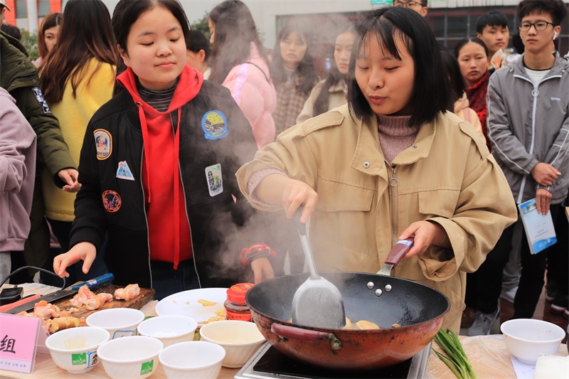 来自土木工程学院学生徐江藜和盛婷组队制作的可乐鸡翅,食材处理得恰到好处,口感甜而不腻,获得了比赛评委们的一致好评。