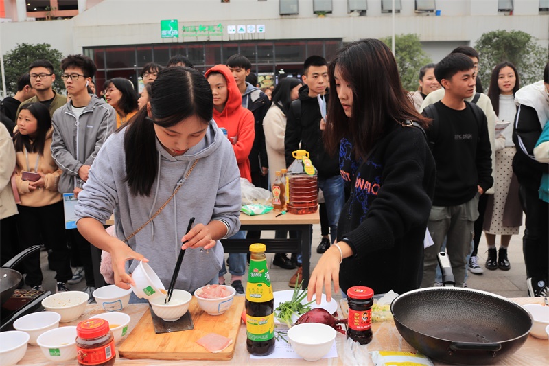 来自软件学院学生曾杭和管理学院学生李悦维组队选择水煮肉片作为比赛菜肴,肉味香辣,软嫩,易嚼。吃时肉嫩菜鲜 ,汤红油亮,麻辣味浓,深受现场同学们的喜爱。