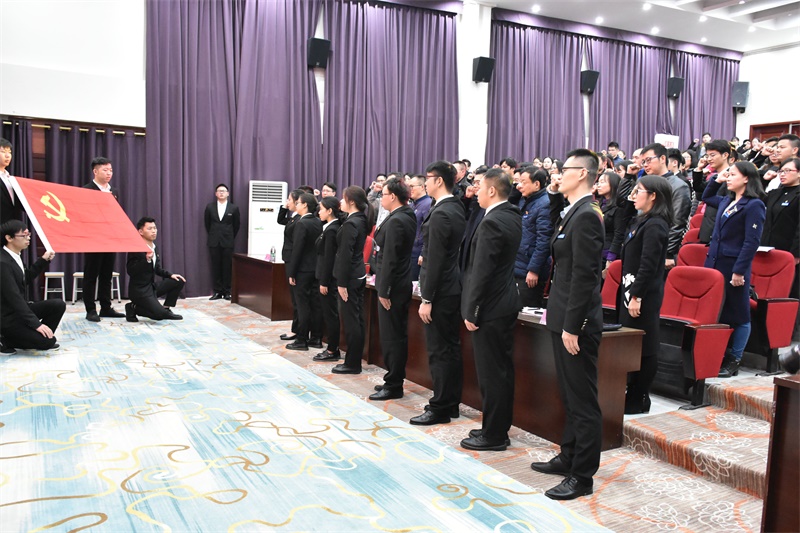 最近,学院里还有8名师生光荣的加入了中国共产党,学院领导在现场亲手为他们佩戴了党徽。面对庄严的党旗,全场新老党员一起庄重宣誓。