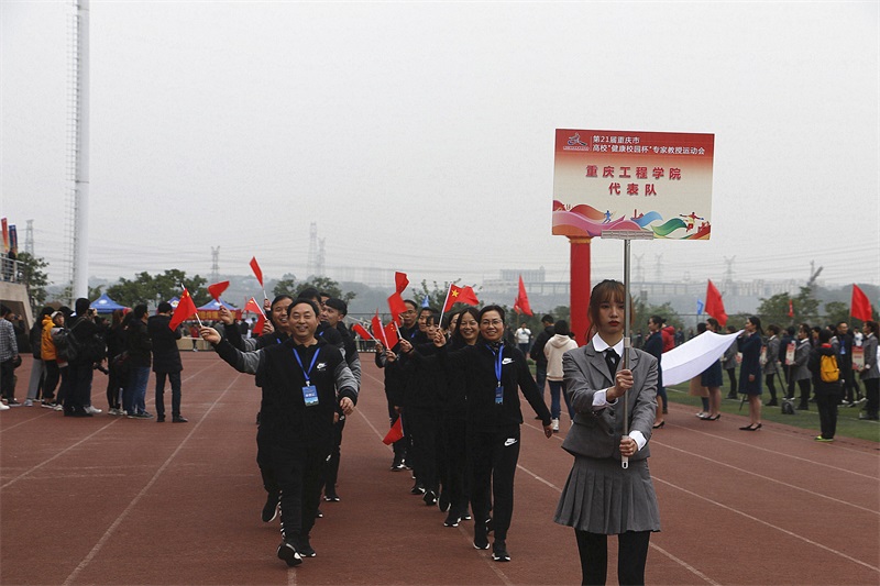 本网讯(文/图 校工会 骆思琪)11月22日,由中共重庆市委教育工委、重庆市教育委员会、重庆市总工会主办的第21届重庆市高校“健康校园杯”专家教授运动会在重庆工程职业技术学院田径运动场举行。此次共有35支队伍参加,我校校长桂国庆、校党委书记兼常务副校长张业平、副校长程昌华、副校长王琼花、副校长蒋国华、纪委书记兼校工会主席唐小勇、校长助理王建东、周龙福、简玉刚等校领导及相关专家教授代表重庆工程学院参加运动会比赛。