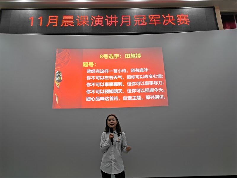 虽然准备时间很短,但各位选手都发挥出了稳定的比赛状态,讲台上的他们或激情昂扬、或引经据典,流畅的语言表达和声情并茂的讲台风格感染了现场的每一位师生。