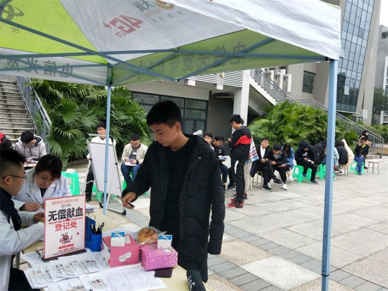 本网讯(文/图 双桥校区团委 刘琳靖)11月21-24日,我校双桥校区志愿者工作部联合大足区血液中心,在双桥校区报告厅前进行义务献血活动,掀起了一场无偿献血的爱心热潮。此次活动吸引了广大师生踊跃报名,共计有1324人参加献血活动,主动为社会奉献自己的一份爱心。