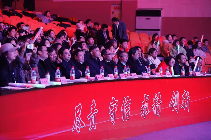 本网讯(文/校团委 尚伟 图/大学生记者团 陈绪春 张家宝)11月29日晚,我校第六届文化艺术季“颂歌献给党•建功新时代”师生合唱比赛在学术报告厅顺利举行。重庆工程学院董事李德志、校长桂国庆、校党委书记兼常务副校长张业平、副校长蒋国华、纪委书记兼工会主席唐小勇、校长助理周龙福、校长助理王建东出席,各学院参赛人员和师生观众共计1000余人全程观看了比赛。