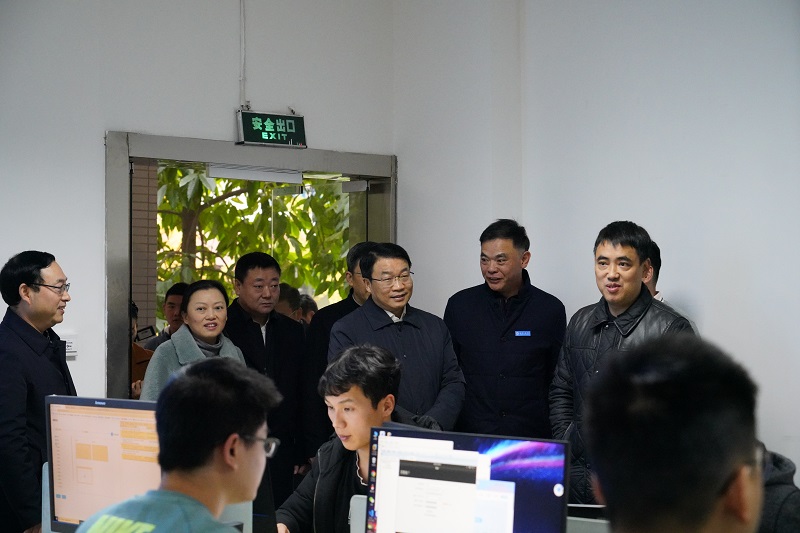 副市长李明清表示,他一直非常向往能到高校来进行调研,也很高兴这次能来到重庆工程学院。经过实地走访和学校领导的介绍,进一步增强了自己对学校的了解。他谈到,重庆工程学院是一所很有特点的高校,给他留下了五个方面的印象。第一,学校举办方有深厚的教育情怀和高远的人生追求;第二,学校“校企合作、产教融合”的办学模式很先进,贴近经济社会发展的需要,紧贴社会需求;第三,学校的专业设置突出信息技术,紧跟上了时代;第四,学校思想政治工作开展有效;第五,党的建设已经成为学校的品牌,学校很多地方区域都有党建要素,融入了教师教学和学生学习生活中。李明清对学校各项工作给予了肯定,并为重庆工程学院点赞。