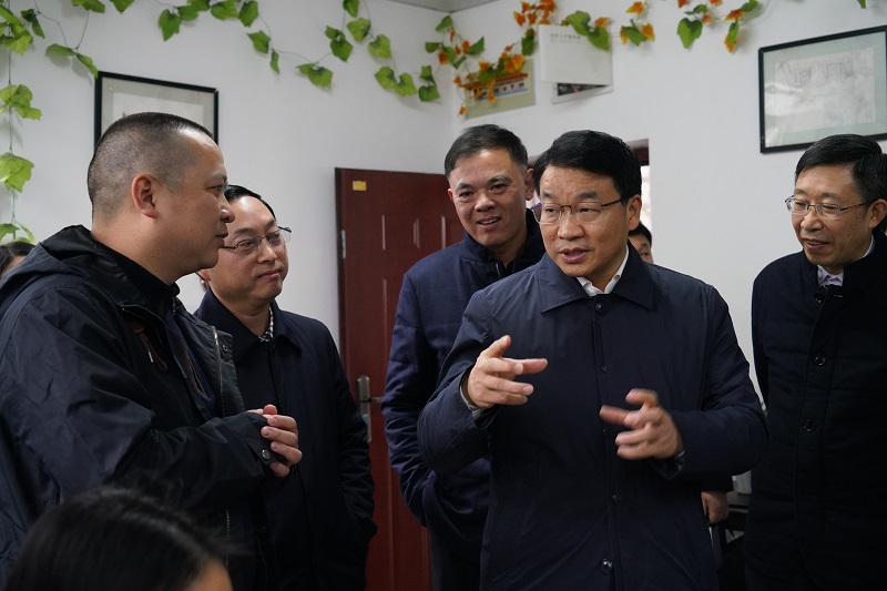 李明清一行首先来到重庆工程学院创新创业园,参观了学校与阿里巴巴集团共建的阿里巴巴新零售人才孵化基地。听取了基本介绍后,李明清详细询问了基地的合作模式,并与学生亲切交谈,了解他们在基地的工作情况。李明清表示,重庆工程学院的专业设置和重庆产业结构贴合得很紧,符合地区产业发展需求。