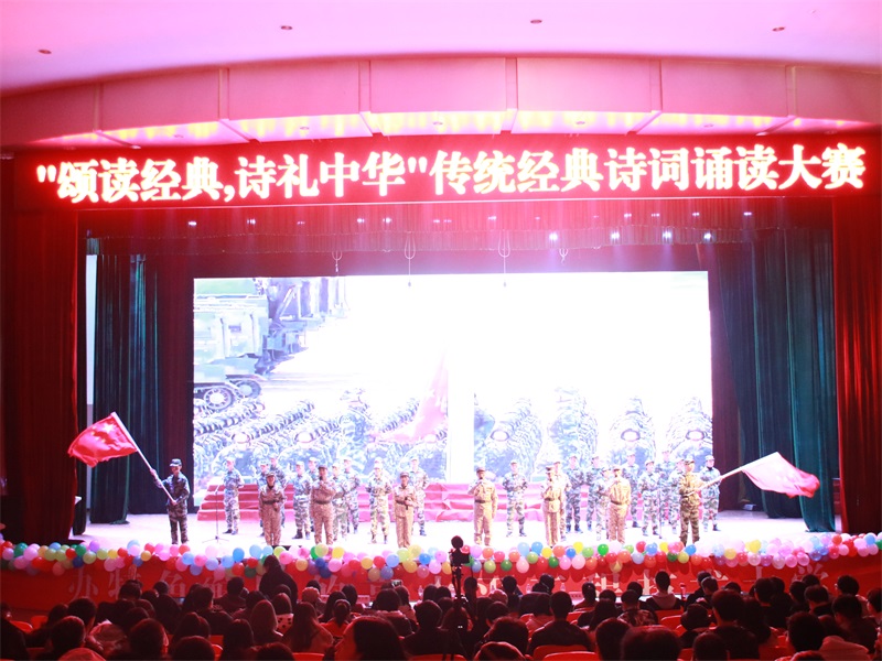 本网讯(文/大学生记者团 郭铃钰 图/大学生记者团 陈绪春 张家宝)为弘扬中华优秀传统文化,丰富大学生文化艺术素养,12月5日晚,重庆工程学院第六届文化艺术节暨传统经典诗词诵读比赛在学术报告厅举行。本次比赛以“颂读经典,诗礼中华”为主题,由我校党委宣传部、校团委、大学生记者团联合承办。当晚,宣传部副部长赵洪浪、计算机与物联网学院党总支书记覃华伟,数字艺术学院党总支书记徐小辉,大数据与人工智能学院党总支书记吴优,电子信息学院党总支书记刘子菱,双桥校区团委书记刘琳靖受邀出席,思政部黄炜、校团委副书记尚伟、管理学院学工处主任付睿受邀担任比赛评委,现场座无虚席,共计有1000余名学生观看。