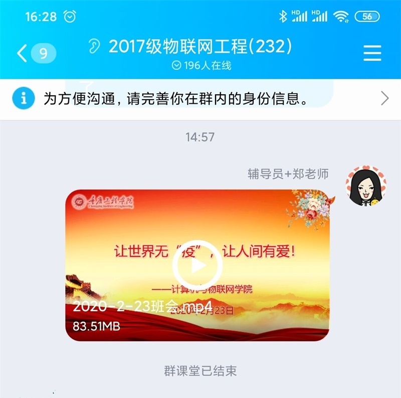 尽管突如其来的新冠肺炎疫情影响了我们的生活,也打乱了我们的学习节奏,但是,为了贯彻“停课不停教、停课不停学”的部署,学校定于2月24日正式启动线上教学。23日晚,重工的辅导员们通过QQ、钉钉、企业微信等线上平台,给同学们召开主题班会,保证开学教学管理工作的顺利进行。