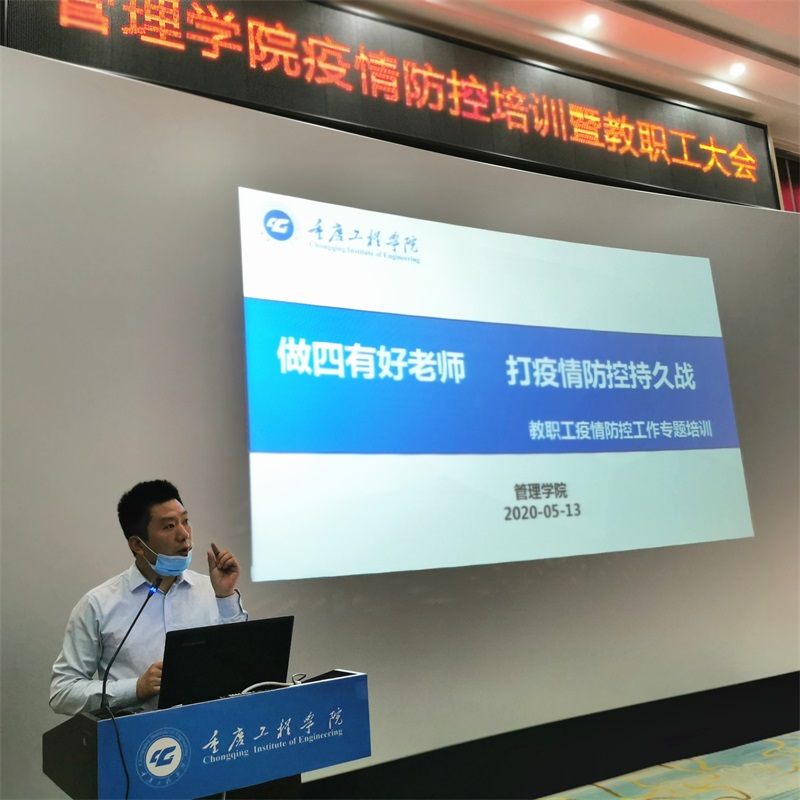 本网讯(文/图 管理学院 宋方伟)5月13日下午,我校管理学院在办公楼阶梯报告厅召开了全院疫情防控专题培训会暨全院教职工大会,学院全体教职员工参加。