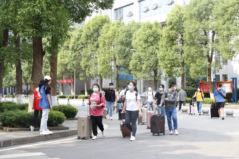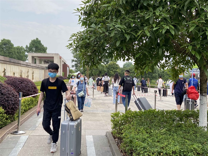双桥校区按照分学院分批次错峰报到的方式,迎接来自大数据学院、电子信息学院、软件学院、数字艺数学院的大一学生正式回到学校。为确保大一学生的返校工作能够有序进行,双桥校区的领导和全体教职工提前做好了相应的预防工作和保护措施。除了校区内做好了全面防控工作以外,校区还安排了车辆到大足南站和双桥汽车站分批次接回返校学生。随着装载学生行李的车辆陆续来到学校门口,学校的辅导员和志愿者们都忙碌了起来,一起帮助学生卸载行李、检查证件、体温检测、手部卫生消毒,学生们接受体温检测后进入到了久别的校园里,校区里的每个岗位、每个环节有序衔接,帮助学生安心入学。