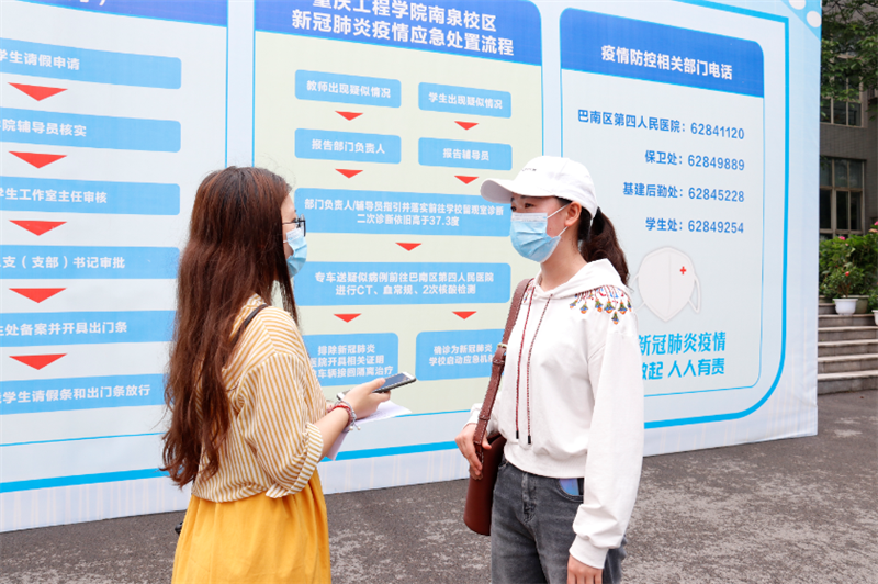 来自电子信息学院电子信息工程专业的大三学生李贵容分享了此次的返校经历:“因为学校离家里远,我是先乘坐大巴到达重庆北站,由志愿者热情接送到学校专车处,最后到达校门口。”在谈到校园里的近期变化时,李贵容也满怀欣喜,“上次离校时是冬天,现在一转眼已经变成夏天了。进校后我才发现,校园里的道路变平整了,很多地方都重新做了整修,变得更美丽了,时隔四月后的返校让我有一种惊喜的感觉。”对于本学期接下来的学习安排,李贵容也有自己的想法和计划,“上了近三个月的线上网课,我很期待能回到学校教室里上课。大三马上就要过了,我准备在这学期的剩余时间里准备英语六级、计算机二级、教师资格证考试,之后再完成自己的毕业设计。接下来我要倍加珍惜在学校的时间,珍惜还能再和同学们一起相处的两个月。”