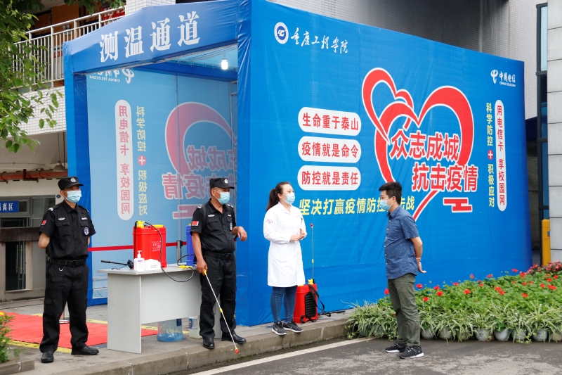 本网讯(文/党委宣传部 图/大学生记者团谢家乐 陈绪春)五月里的重工天朗气清,香樟葱绿展新枝,校园复苏迎家人。重庆工程学院各年级学生分段分批、错时错峰、平安健康返回校园,宁静多月的校园恢复生机活力,期待已久的大学校园生活点击重启。从13日起,学校在重庆北站北广场、重庆西站、南坪四公里设置了接待点,迎接从全国各地赶回学校的同学们。截至19日中午,重庆工程学院共顺利返校11850人,其中南泉校区返校8001人,双桥校区返校3849人。为了这一天的到来,学校已经提前准备了两个多月,从对管理制度的反复推敲到返校方案的多次修改,从摸排在家学生健康状况到检查校内各项准备设施,从开展疫情防控应急演练到做好防疫物资筹集发放,一系列的细致工作都见证了学校对同学们安全、顺利返校复课的殷切期盼。