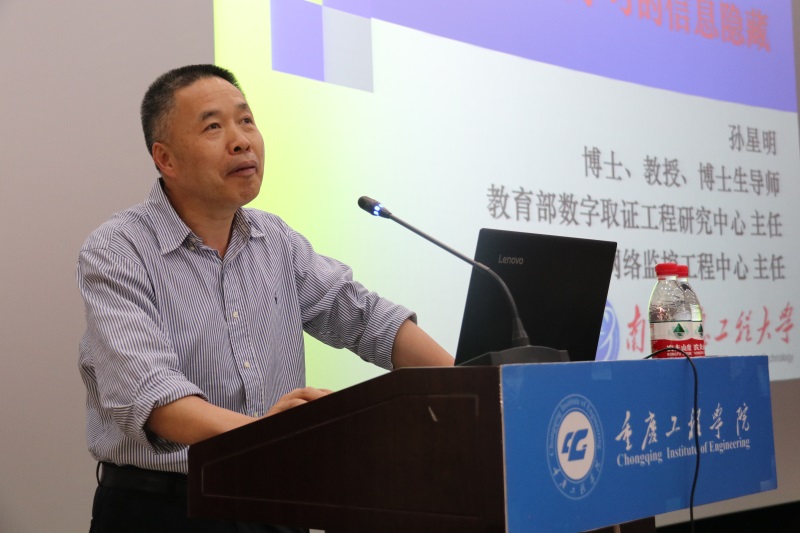 本网讯(文/图 大数据学院 靳冲)5月22日下午,由我校教师发展中心主办、大数据与人工智能学院协助承办,在南泉校区办公楼阶梯会议室举办了一场题为“给予深度学习的信息隐藏”的专题报告会。此次报告会特别邀请到教育部数字取证工程研究中心主任孙星明教授担任主讲,校党委书记谭明术担任报告会主持,来自大数据与人工智能学院、计算机与物联网学院、软件学院、电子信息学院负责人和部分专业教师等共计65人现场参加。