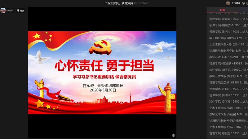 本网讯(文/图 组织部谭军)为深入学习贯彻习近平新时代中国特色社会主义思想,加强党员教育管理监督,强化党员身份意识,提升毕业生党员的党性修养,发挥毕业生党员走入社会后的模范带头作用,5月30日上午,重庆工程学院党校在线上举办2020年毕业生党员专题培训,此次培训会由党委组织部部长甘永诚主讲。