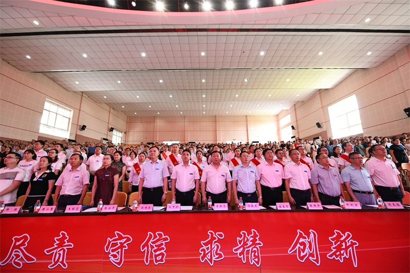 大会第一项议程:全体起立奏唱国歌,在庄严的音乐声中,现场全体人员神情庄严肃穆、歌声铿锵有力。