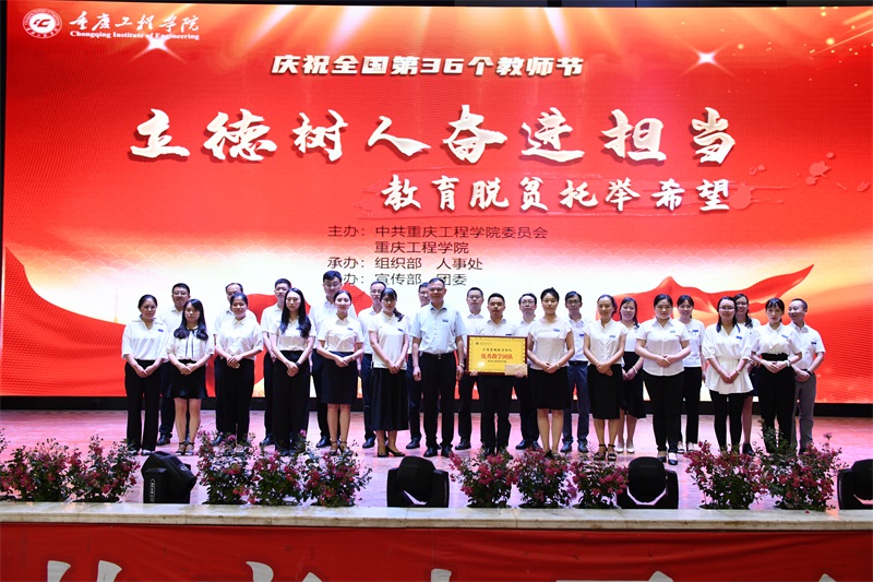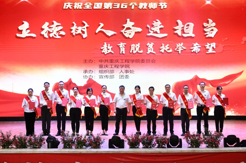 本网讯(文/人事处 教师发展中心 图/党委宣传部)9月9日下午,我校在南泉校区学术报告厅举行“立德树人奋进担当,教育脱贫托举希望”庆祝全国第36个教师节表彰大会暨颁奖典礼。重庆工程学院董事长王万均,学校董事李德志,校长桂国庆,党委书记谭明术,党委副书记兼常务副校长张业平,副校长程昌华,副校长王琼花,副校长蒋国华,纪委书记兼工会主席唐小勇,校长助理谭其贵、周龙福、简玉刚、王建东等校领导出席;各二级学院院长、书记,学校各职能部门负责人、教师和学生代表逾600人参加。本次大会由党委副书记兼常务副校长张业平主持,大会采用线上线下相结合的方式,全校师生均可通过网络视频收看现场活动同步直播。