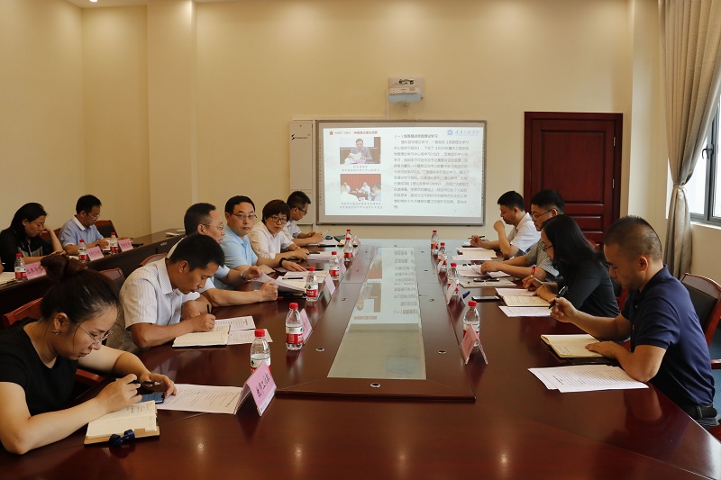 本网讯(文/党政办 图/大学生记者团谢家乐)9月10日,重庆市委教育工委委员、重庆市教委专职督学莫龙飞来到我校专程调研意识形态工作,同行的还有重庆市教委宣教处副处长钱程、市教委督导室副主任邱小红、市政府教育督导室干部赵勇等。我校党委书记兼督导专员谭明术、党委副书记兼常务副校长张业平、党委职能部门负责人、各二级学院党总支书记陪同参加了调研活动。