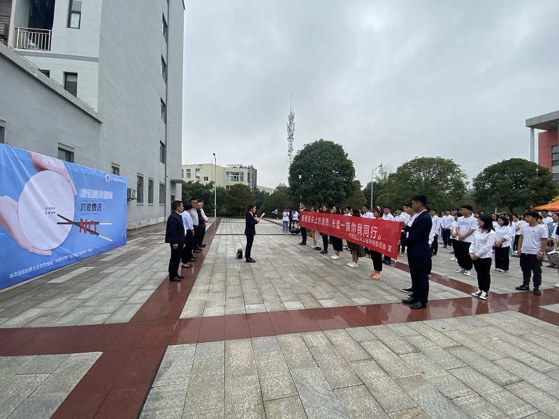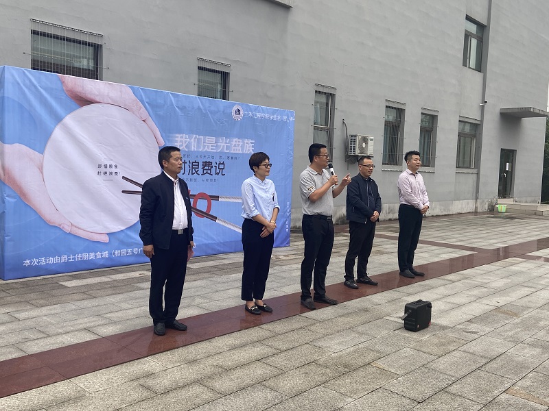 本网讯(文/图 土木工程学院 刘琳靖)为深入学习贯彻习近平总书记重要指示精神,发扬中华民族勤俭节约的传统美德,9月21日中午,土木工程学院在南泉校区和园5号广场举行了“光盘行动”启动仪式。校长助理王建东、学工部部长黄燕、土木工程学院院长雷江出席,校团委书记黄涛带领全院辅导员教师和全院学生代表共计200余人参加启动仪式,仪式由土木工程学院党总支书记李军主持。
