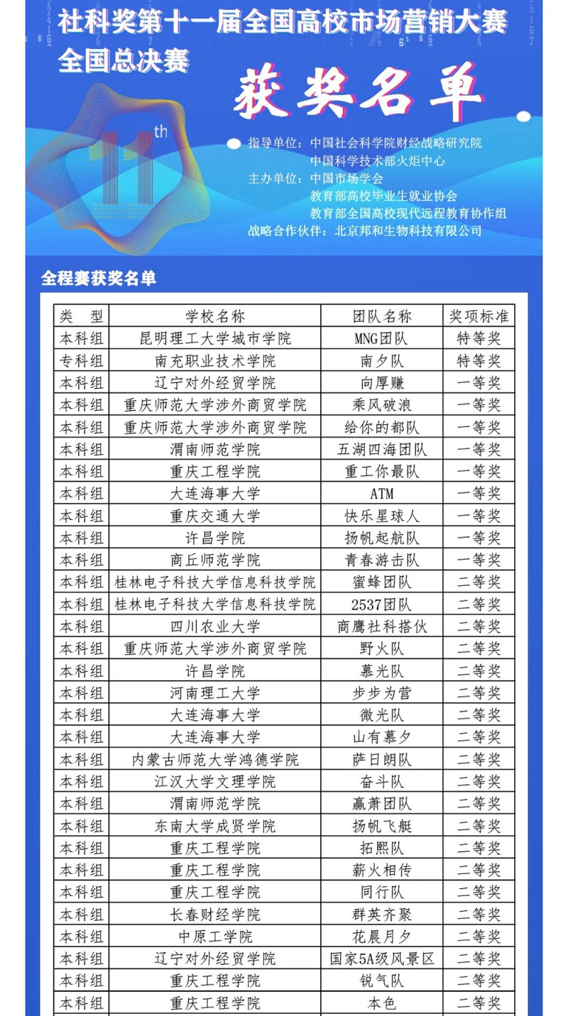 管理学院喜获第十一届全国市场营销大赛11项大奖