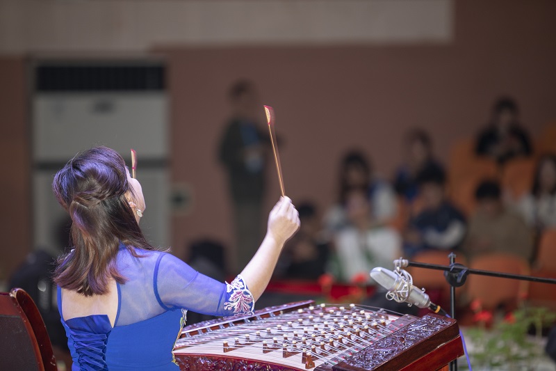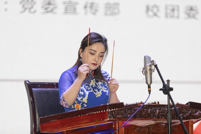 艺术家许雯雯扬琴独奏《天山之春》,充满异域风情,在场师生仿若亲临天山之境。