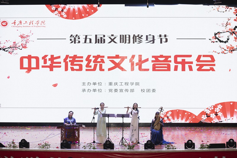 本网讯(文/图 党委宣传部 赵鹏涛)为贯彻落实习近平总书记系列重要讲话精神,围绕立德树人的根本任务,培育和践行社会主义核心价值观,引领学生坚定“四个自信”,弘扬传统文化,10月21日晚,重庆工程学院南泉校区学术报告厅举行了第五届文明修身节开幕式暨中华传统文化音乐会。党委书记兼督导专员谭明术、党委副书记兼常务副校长张业平、校长助理王建东、各二级学院党总支书记以及部分职能部门负责人出席现场观看演出活动。