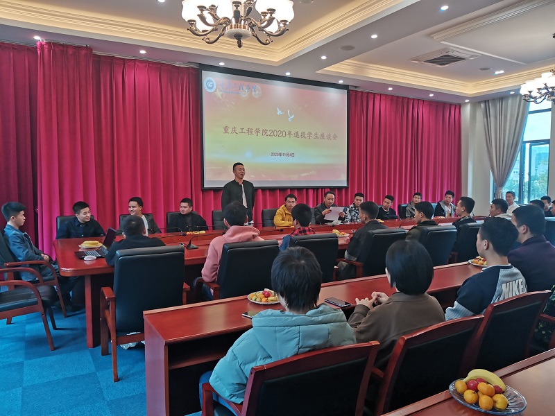 本网讯(文/图 党委武装部 朱文韬)11月4日下午,我校党委武装部在南泉校区新办公楼206会议室组织召开了2020年退役复学学生座谈会,会议由党委武装部部长熊力主持,共有55名退役复学学生参加。