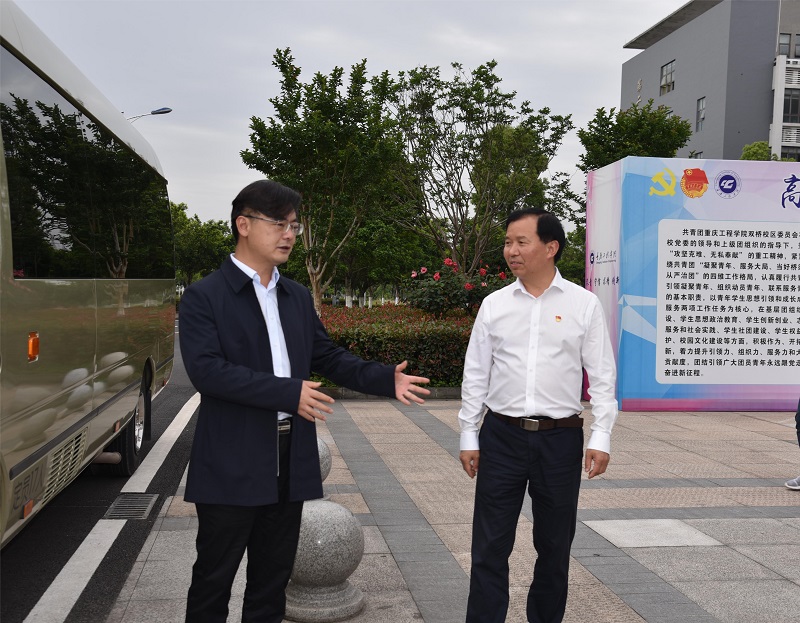本网讯(文/图 双桥校区 吕颖莉)4月26日,重庆市大足区人大常委会副主任印国建一行莅临我校双桥校区专题调研教育教学开展情况。我校党委副书记、双桥校区党工委书记唐小勇,副校长、双桥校区管委会主任杨桂陪同调研。