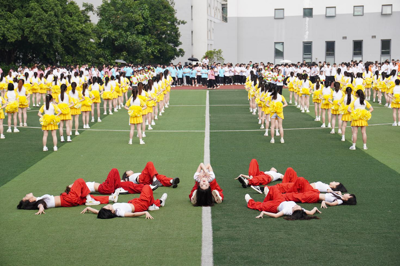 和风拂面,旌旗飞扬,接下来,由软件与人工智能学院带来《舞动青春》的团体表演,在动感的音乐中,红旗飘扬,巨龙舞动,青春洋溢的舞步为全校师生呈现了一场视觉盛宴;绿茵场上,参加《奋斗青春》广播体操比赛的同学们动作整齐划一、活力四射,展现了团队精神;最后由校舞蹈队和管理学院带来的舞蹈《律动青春》以整齐的队形,精彩的表演,焕发出朝气蓬勃的精神面貌。