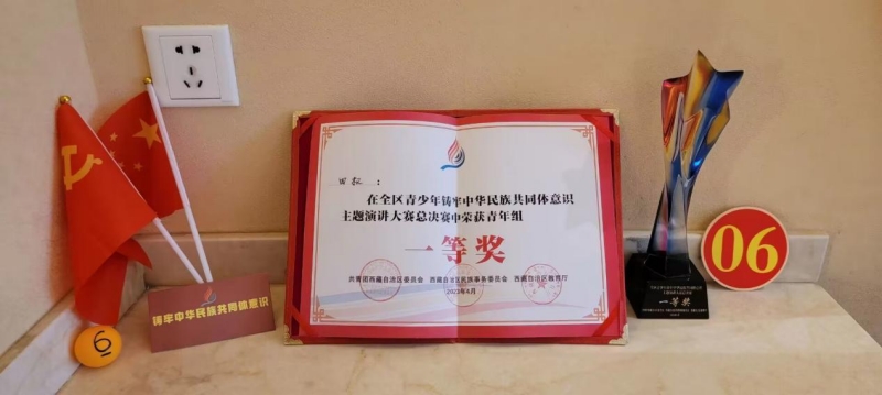 在校期间,田权曾多次获得“晨课月冠军”、“演讲比赛”一等奖,毕业后的他,把自己在学校里练就的本事发挥到极致。在2023年“西藏自治区青少年铸牢中华民族共同体意识”主题演讲大赛总决赛中,田权凭借优异的成绩获得青年组一等奖。在工作道路上,他继续脚踏实地与藏族同胞们携手共进,将辛勤的汗水挥洒在祖国的边疆上,为祖国的边疆发展做出无私奉献。