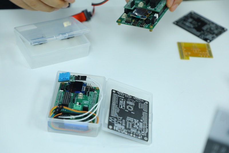 “光明顶”里摆着很多学生的作品,“我让他们在自己做的套件里都刻上自己的名字,”李波随手拿起一组刻着“罗满作品”的套件说道,“2021年的时候,我拿着这个开发套件去渝州车辆工程学校做课程展示,学校的负责人当即就定了100套,这是22届罗满同学的个人作品,也是他在‘光明顶’里赚到的‘第一桶金’。”
