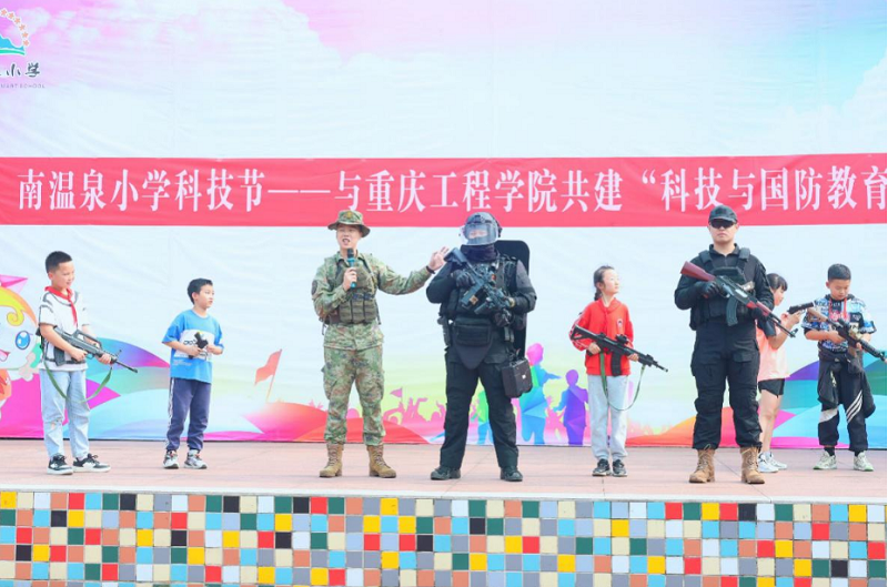 本网讯(文/武装部 朱文韬 图/大学生记者团 刘欣怡)10月18日,党委武装部组织校国旗护卫队、大学生记者团、军事爱好者协会深入南温泉小学共同开展“科技与国防”主题活动。