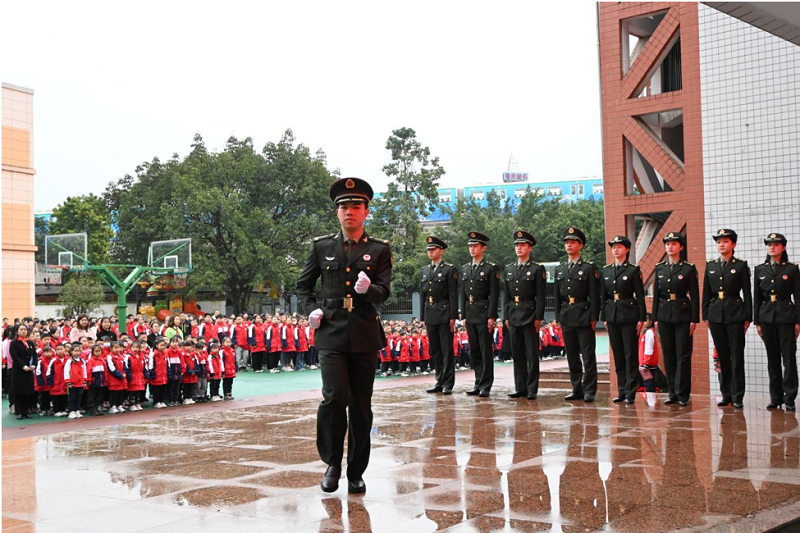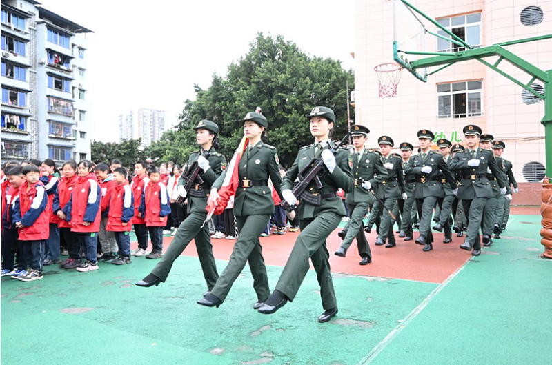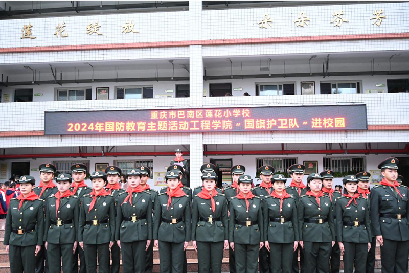 本网讯(文/图 武装部 朱文韬)为弘扬爱国主义精神,牢铸国防教育,近日,党委武装部组织校国旗护卫队赴巴南区莲花小学为同学们带来了一次别出新意的国防教育活动。