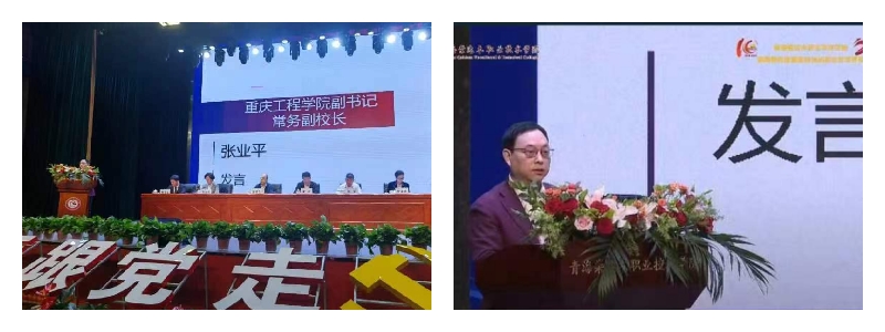张业平代表重庆工程学院对该校取得的辉煌成就表示热烈祝贺,向全体师生员工表示诚挚的敬意。他回顾了我校响应教育部号召,对口援建海西职校的工作情况,对口援建10年来,我校携手海西职校围绕教育教学改革、信息化数字化校园建设、师资队伍建设、专业建设与发展、办学条件的改善等,持续用劲发力,海西职校的全面建设发生了翻天覆地的变化,人才培养质量得到了显著的跃升,得到了社会各界的广泛赞誉。张业平认为要继续发扬传统、深化友谊,加强合作、携手前行,着力推动高质量发展,在产教融合中大力培养高素质应用型人才,为加快建设教育强国贡献重工与海西的力量。