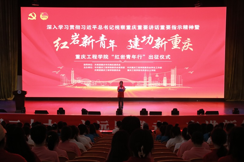本网讯(文/图 校团委 张俊)7月7日上午,由团巴南区委指导,重庆工程学院党委宣传部、党委学生工作部、团委、马克思主义学院联合举行的“红岩新青年 建功新重庆”——重庆工程学院“红岩青年行”出征仪式在重庆工程学院学术报告厅举行。