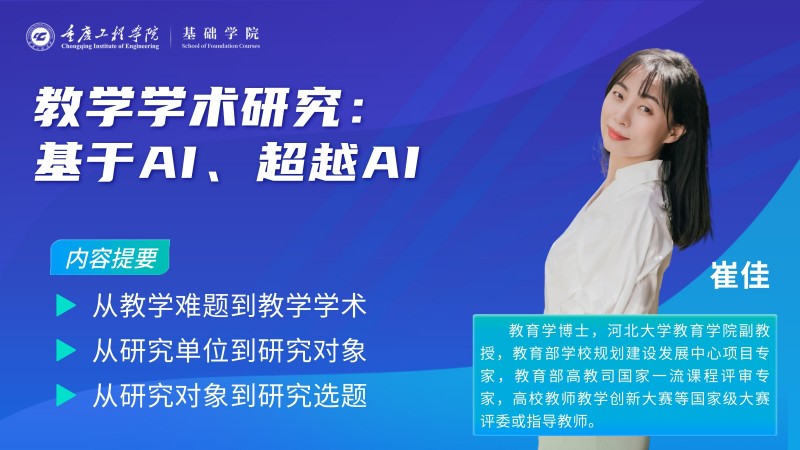 本次讲座围绕“从教学难题到教学学术”“从研究单位到研究对象”“从研究对象到研究选题”三大主线展开,深入探讨人工智能技术在教育研究中的应用与超越路径。崔佳结合丰富案例,阐释了教学学术研究的核心逻辑。通过案例分析,指导教师如何将课堂中的“痛点问题”,如学生参与度低、个性化教学实施难,转化为可研究的学术命题,并借助AI工具进行数据挖掘与模式分析。