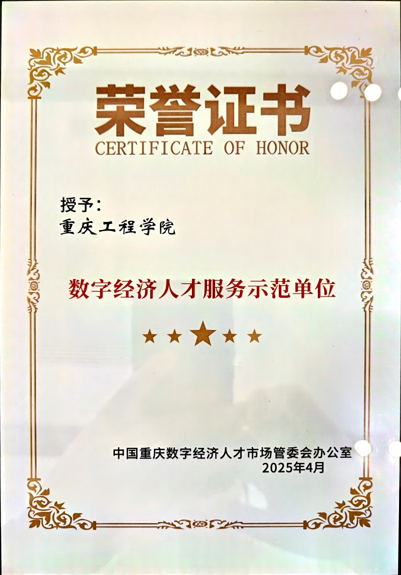 本网讯(文/图 招就处 杨军)4月18日,中国重庆数字经济人才市场管委会在巴南软件园召开工作推进会,会上对中国重庆数字经济人才市场工作站(重庆工程学院)授予了“数字经济人才服务示范单位”称号,以表彰其在数字经济人才培养和就业服务领域的突出贡献。
