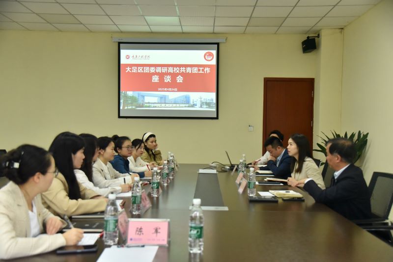尹鸿对我校共青团工作给予了高度肯定。她介绍了大足区共青团的基本情况和此次调研交流目的,希望以此次调研交流为契机,健全联络机制,开展卓有成效的校地合作。双方还围绕大学生社会实践、西部计划、青年创新创业、群众性体育活动等工作进行了深入的交流与探讨。