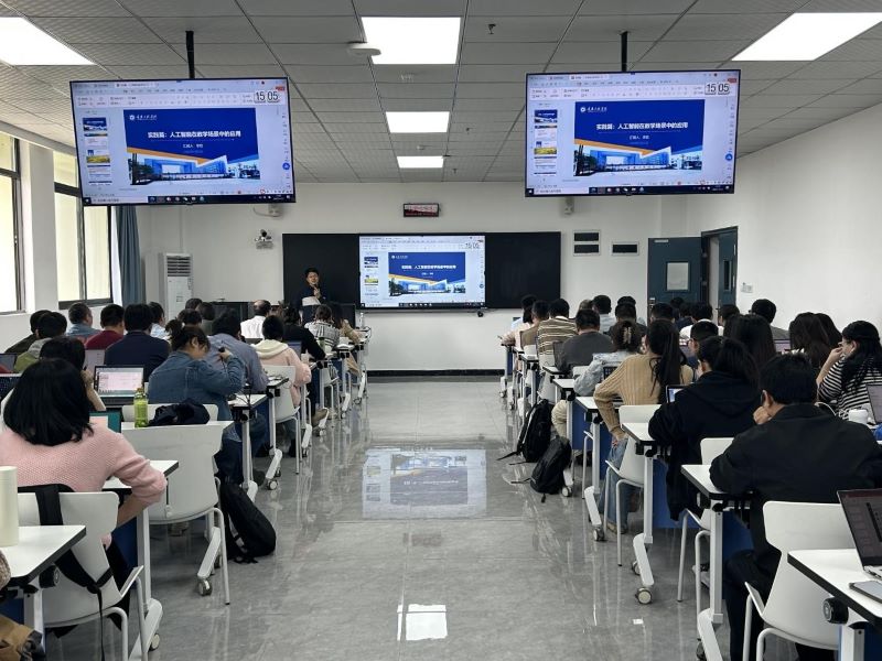 本网讯(文/图 教师发展中心 罗鼎元)为推进人工智能与教育教学深度融合,4月23日教师发展中心在71202教室举办了“人工智能在教学场景的应用”专题培训。本次培训特邀大数据与人工智能学院院长李钦担任主讲,通过实操演练的方式,系统展示了人工智能技术在教学全流程中的创新应用,吸引全校85名教师参与。