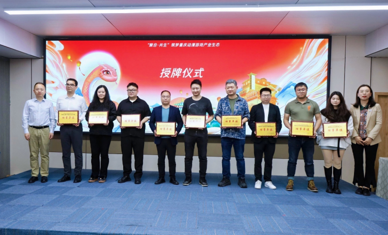 会上,中国动漫集团知识产权中心王星喻发布2025年动漫与文旅融合研究报告,中国文促会动画专业委员会赵强就“80年薪火相传,初心如磐”重庆与中国动画的关系进行了发言。协会授予我校数字艺术学院为重庆市渝中区动漫游戏产业协会理事单位,对我校数字艺术学院在重庆动漫游戏行业深耕的肯定。此次授牌也标志着应用型人才培养在校、会、企三方多维度的联动进一步深化。