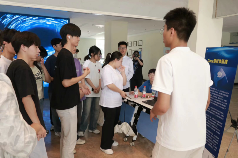 活动中,300 余名师生在竞赛项目展区和 AI 知识长廊认真参观获奖项目,交流创新思路,体验各种 AI 工具,感受科技带来的便捷与惊喜。此次科技文化节为全校师生搭建了一个了解、探索人工智能的平台,相信将激发更多人对人工智能的热爱与追求。