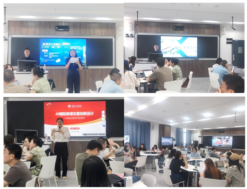 专题讲座由重庆灿特科技有限公司项目经理孙淋川与教师发展中心王慧英担任主讲,孙淋川从微课选题策略与要点、微课教学设计要点、常见微课视频结构、微课脚本撰写技巧等四个方面进行了详细讲解,为教师们提供了微课设计与制作的系统理论知识。随后,孙淋川对标重庆市本科高校微课教学比赛评审标准(2025年版),对八位教师提交的微课视频的亮点以及优化建议进行了精准指导,让教师们更加明确微课制作的具体要求和提升方向。王慧英则从愿力、助力两个方面,分享了她从校级微课到市级微课的打磨过程,以及如何借助AI辅助微课文案的创新设计,为教师们进行微课创作提供思路。分组研讨环节,各组教师针对参赛内容的优化与呈现策略进行了深入研讨,积极交流想法,分享经验,现场气氛热烈。针对性指导环节由各组指导教师在教师进行微课设计期间进行一对一随时性指导。