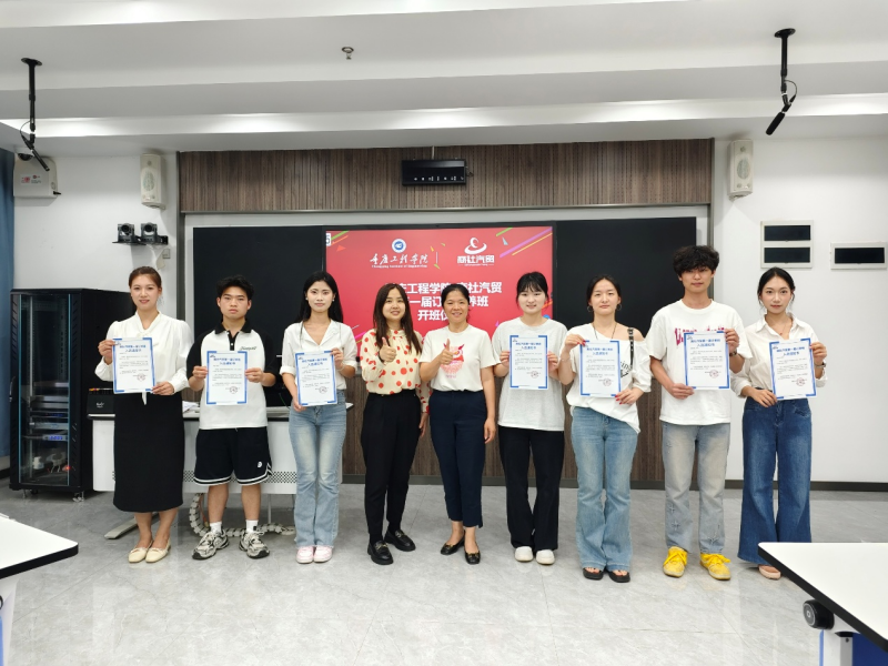 重庆商社汽贸(重庆百货600729全资子公司)是全国十佳汽车服务商,中国汽车经销商百强企业。公司旗下代理19个汽车品牌,形成“销售-用品-保险-金融-维修服务-二手车置换”全生命周期服务生态闭环。为帮助同学们更了解企业情况,快速融入企业,开班仪式结束后杨总、谭经理对学生们进行了关于企业品牌文化、职场沟通及汽车基础知识等相关内容培训。随后王总与朱老师共同颁发了订单班录取通知书,针对培训过程中表现优异的同学黄总颁发了优秀奖。